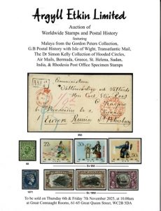 Auction of Worldwide Stamps and Postal History Argyll EtkinThursday 6 November 2025 - Friday 7 November 2025 Please follow this link to view your area of interest: http://www.auction-net.co.uk/auctions.php