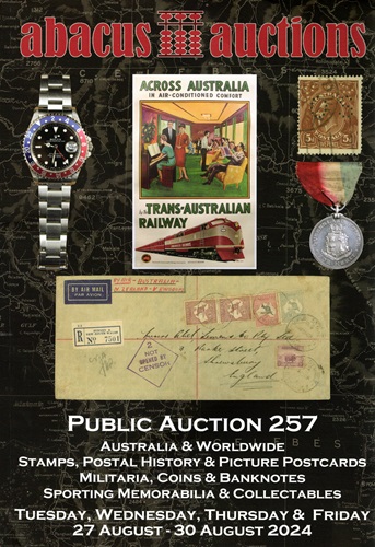 Public Auction No 257 Abacus Auctions, Mount Waverley, AustraliaTuesday 27 August 2024 - Friday 30 August 2024 Realisations can be found at: http://www.abacusauctions.com.au